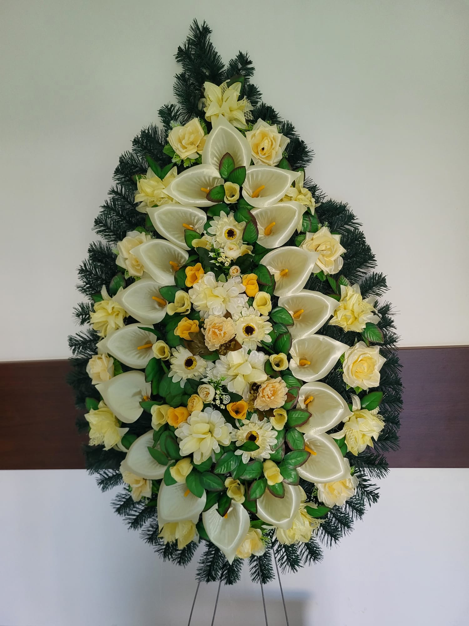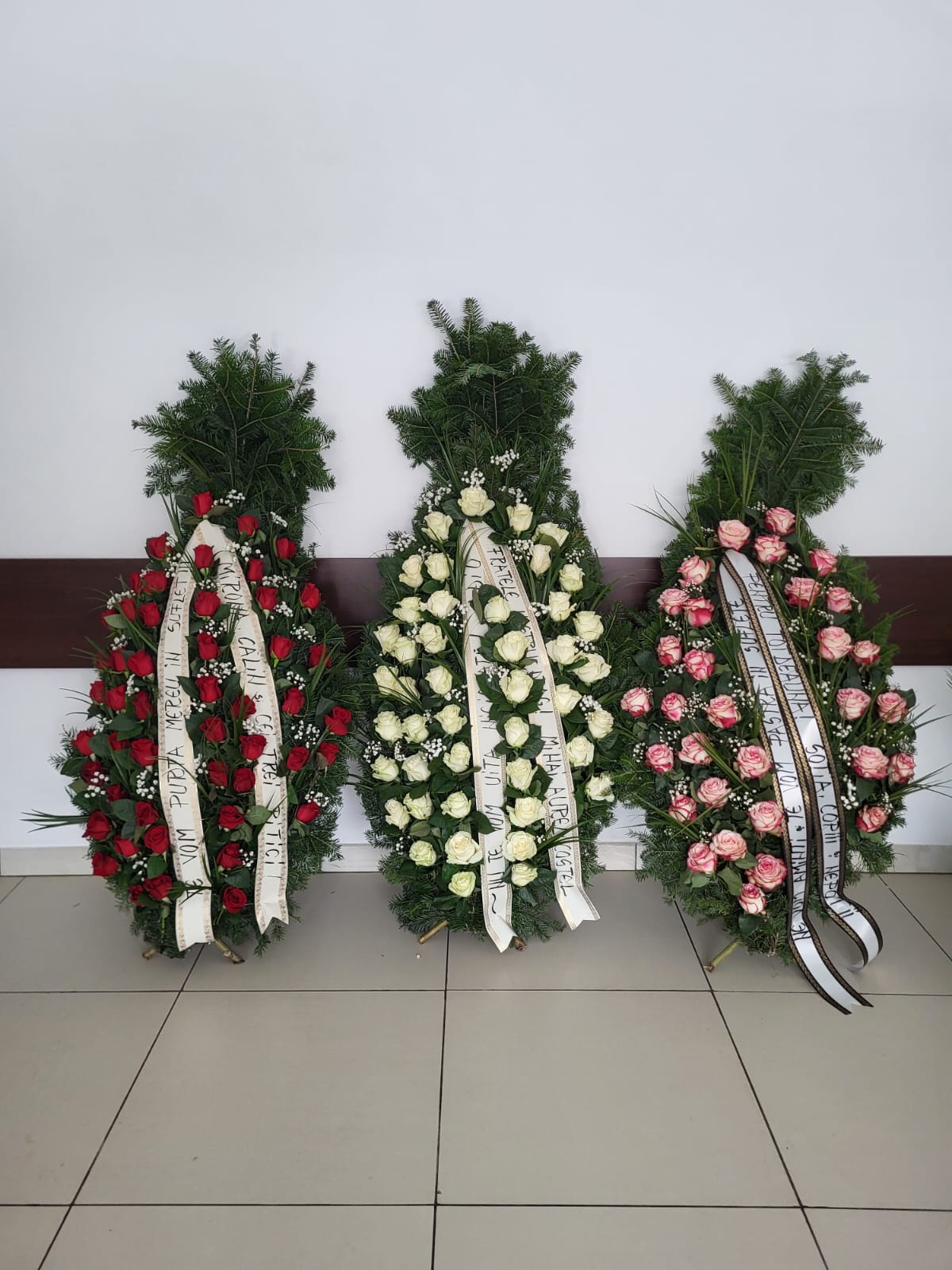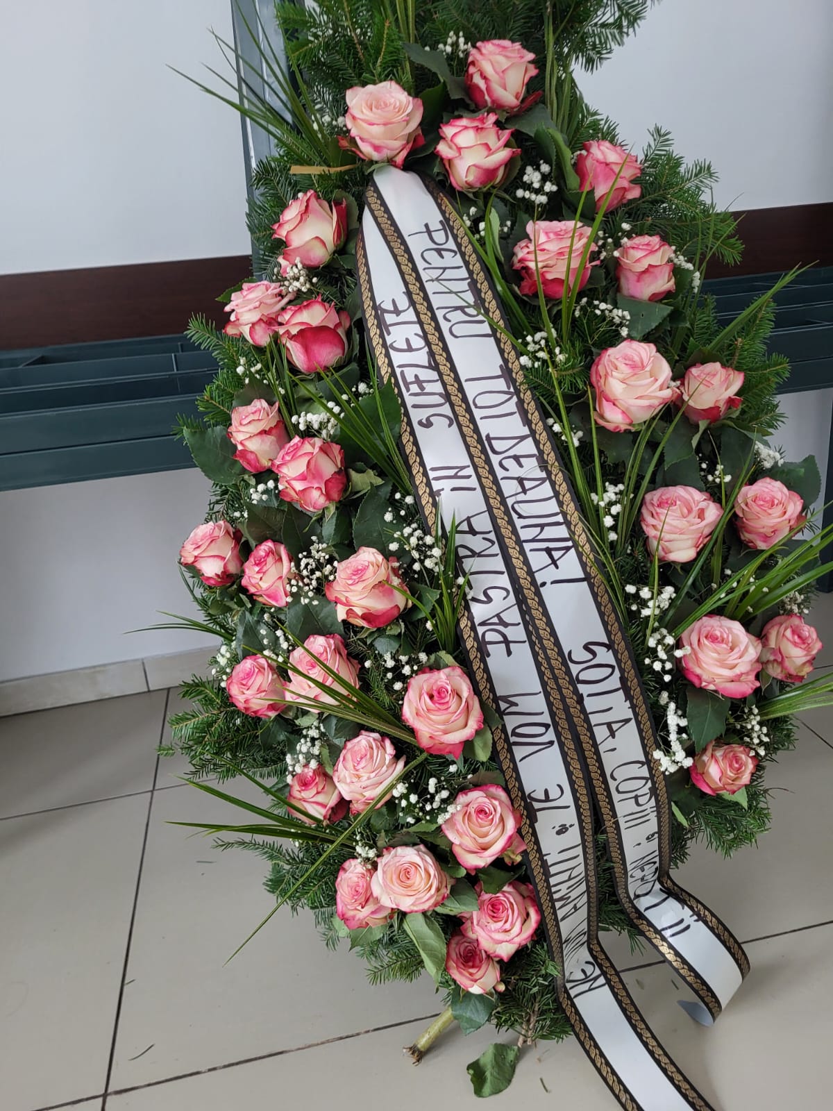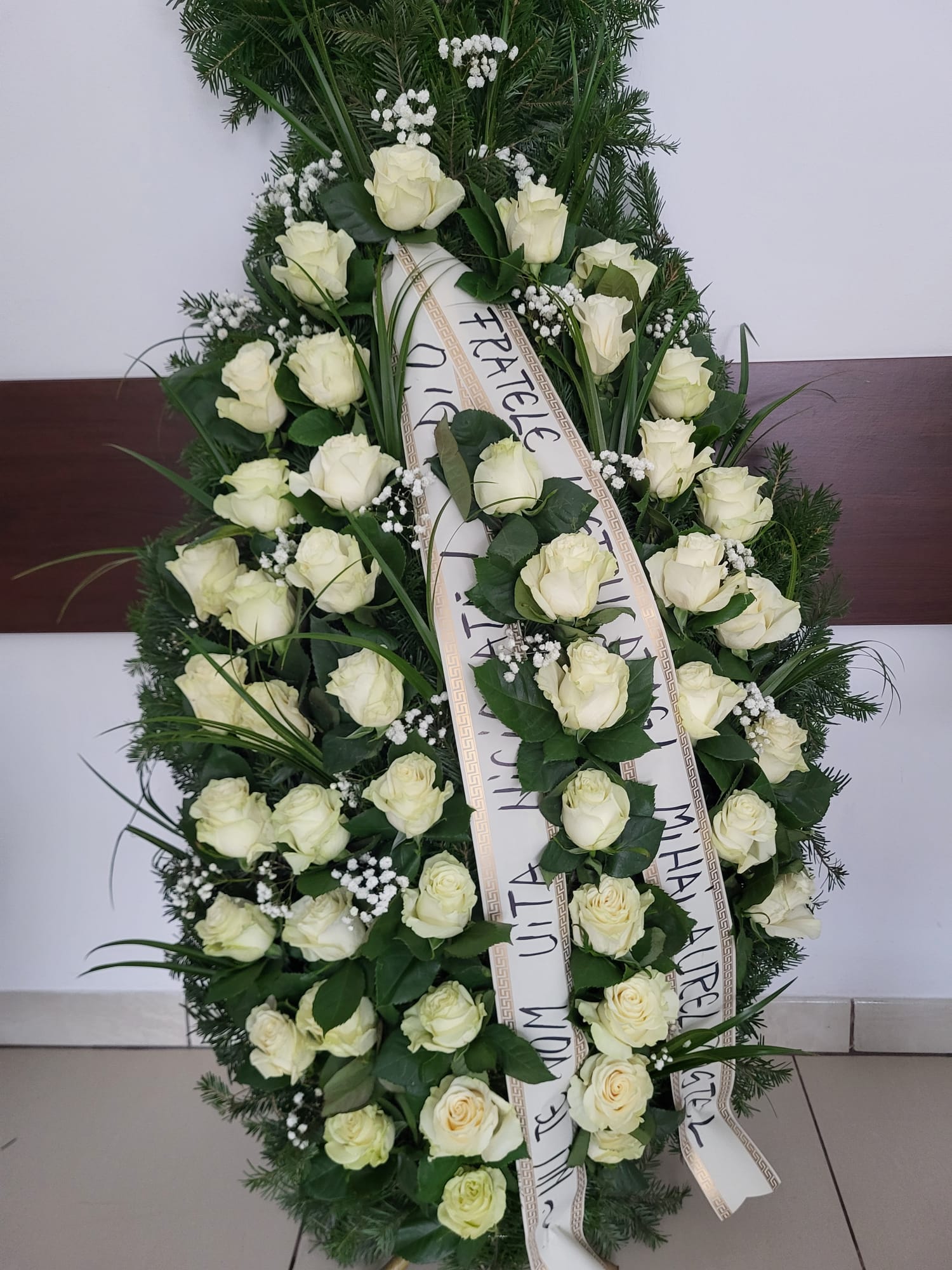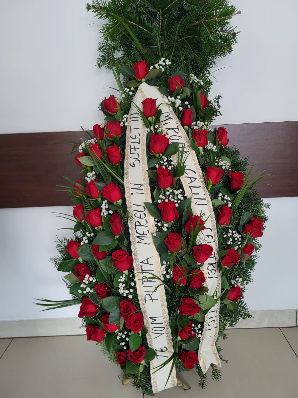Pentru a aduce un omagiu persoanei decedate pe ultimul sau drum, puteti alege din oferta noastra coroane funerare, jerbe si diverse aranjamente confectionate atat din flori naturale, cat si artificiale. Omagiul dumneavoastra se poate transmite printr-un mesaj inscriptionat pe panglica.